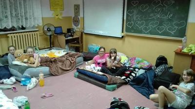 się o godzinie 17:00. Po pierwszych okrzykach zachwytu i radości wyrażonej licznymi piskami uczniowie przystąpili do przygotowania miejsc do spania. Ich "sypialnią" były sale lekcyjne, a „łóżkami” materace, karimaty i szkolne materace gimnastyczne.