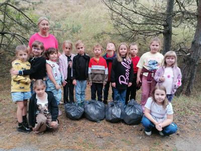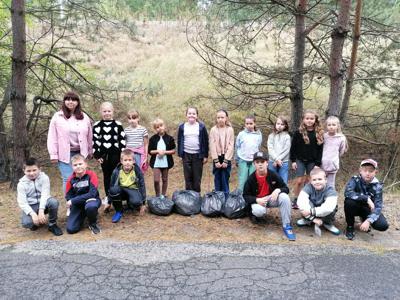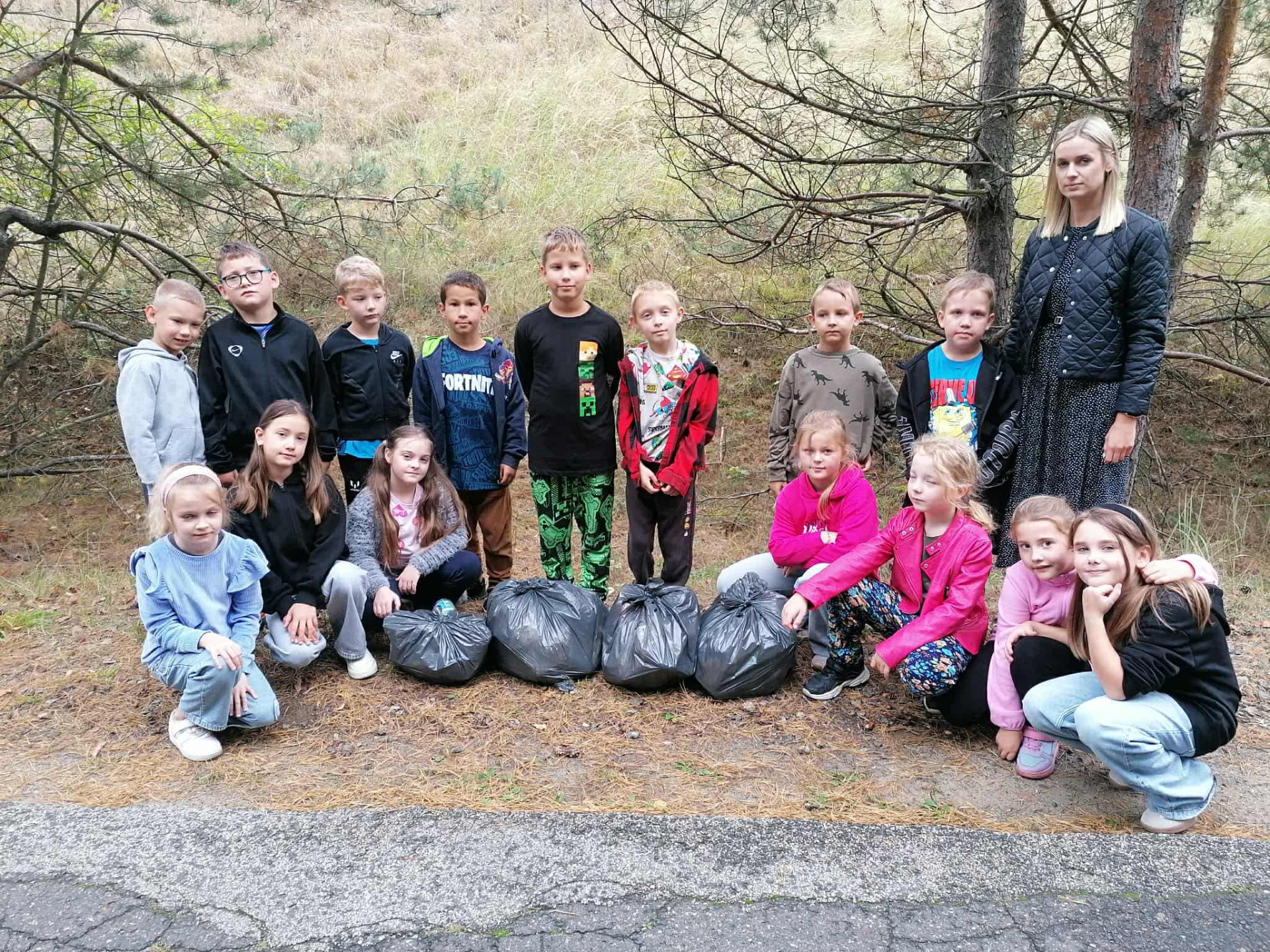 Uczniowie klas I–III wybrali się do pobliskiego lasu, aby wziąć udział w akcji „Sprzątanie Świata”. Zaopatrzeni w rękawiczki i worki na śmieci z zaangażowaniem porządkowali teren, ucząc się przy tym, jak ważna jest troska o środowisko naturalne. Dzięki wspólnej pracy las stał się czystszy, a dzieci miały okazję poczuć, że ich wysiłek ma realny wpływ na otaczającą przyrodę.