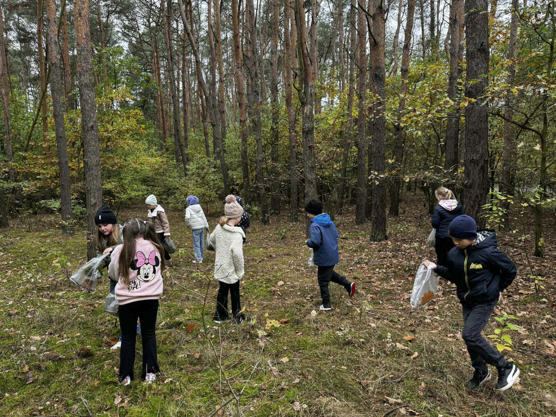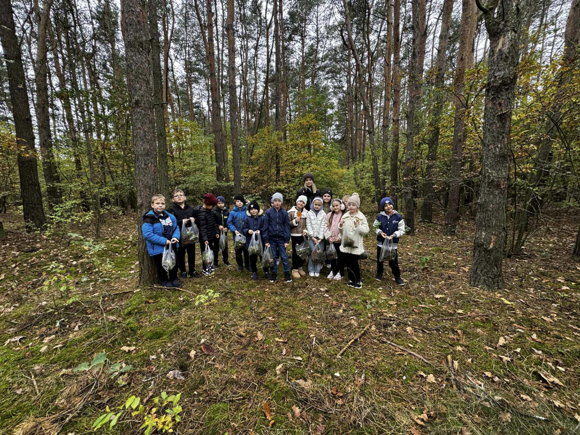 Uczniowie klasy II wybrali się na wycieczkę do pobliskiego lasu. Podczas spaceru obserwowali przyrodę, rozpoznawali gatunki drzew i krzewów oraz zbierali dary lasu – liście, szyszki, żołędzie, mech, korę i gałązki. Dzieci przypomniały sobie zasady właściwego zachowania w lesie i dowiedziały się, jak ważne jest dbanie o przyrodę.