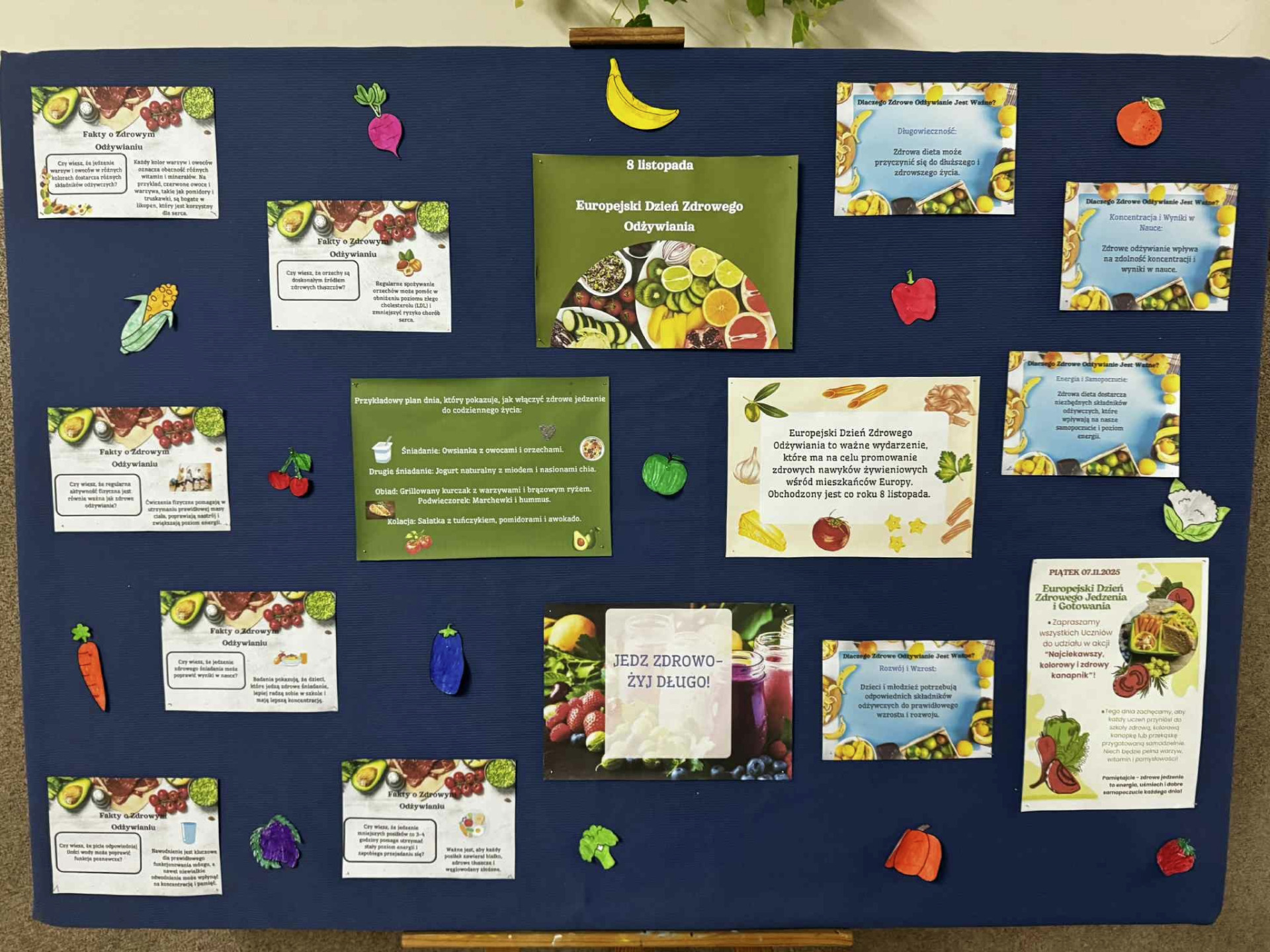 W ramach obchodów została również przygotowana gazetka o zdrowym odżywianiu, przedstawiająca zasady zdrowej diety oraz znaczenie spożywania warzyw, owoców i pełnowartościowych produktów.