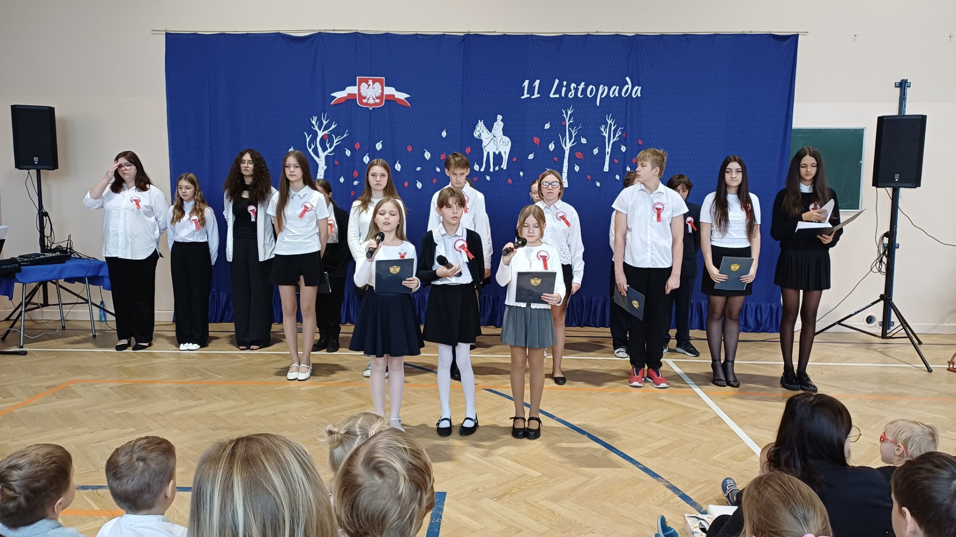 Dnia 7 listopada w naszej szkole odbyła się uroczysta akademia z okazji Święta Niepodległości. Scenariusz przygotowały Jolanta Sierota i Mariola Koper, a oprawę muzyczną Piotr Słoma, opierając przedstawienie na historii oraz pieśniach patriotycznych, które towarzyszyły Polakom w trudnych chwilach walki o wolność.