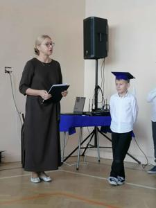 Po złożeniu ślubowania Pani Dyrektor dokonała symbolicznego pasowania na ucznia. Wielkim ołówkiem, jak czarodziejską różdżką dotykała ramion swoich podopiecznych. Na pamiątkę tego wydarzenia pierwszoklasiści otrzymali dyplomy oraz drobne upominki przygotowane przez rodziców.