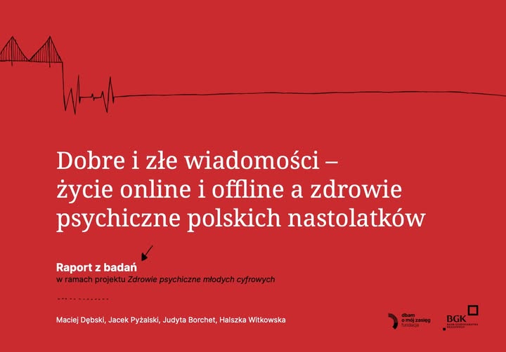 Polecamy ważny raport Fundacja Dbam o Mój Zasięg dotyczący życia online i offline polskich nastolatków. Badania pokazują zarówno szanse, jak i zagrożenia wynikające z korzystania z internetu, a także wskazują, jak wspierać młodych w cyfrowej rzeczywistości.