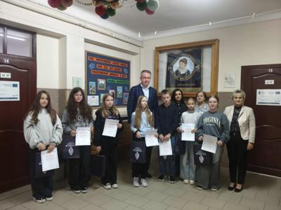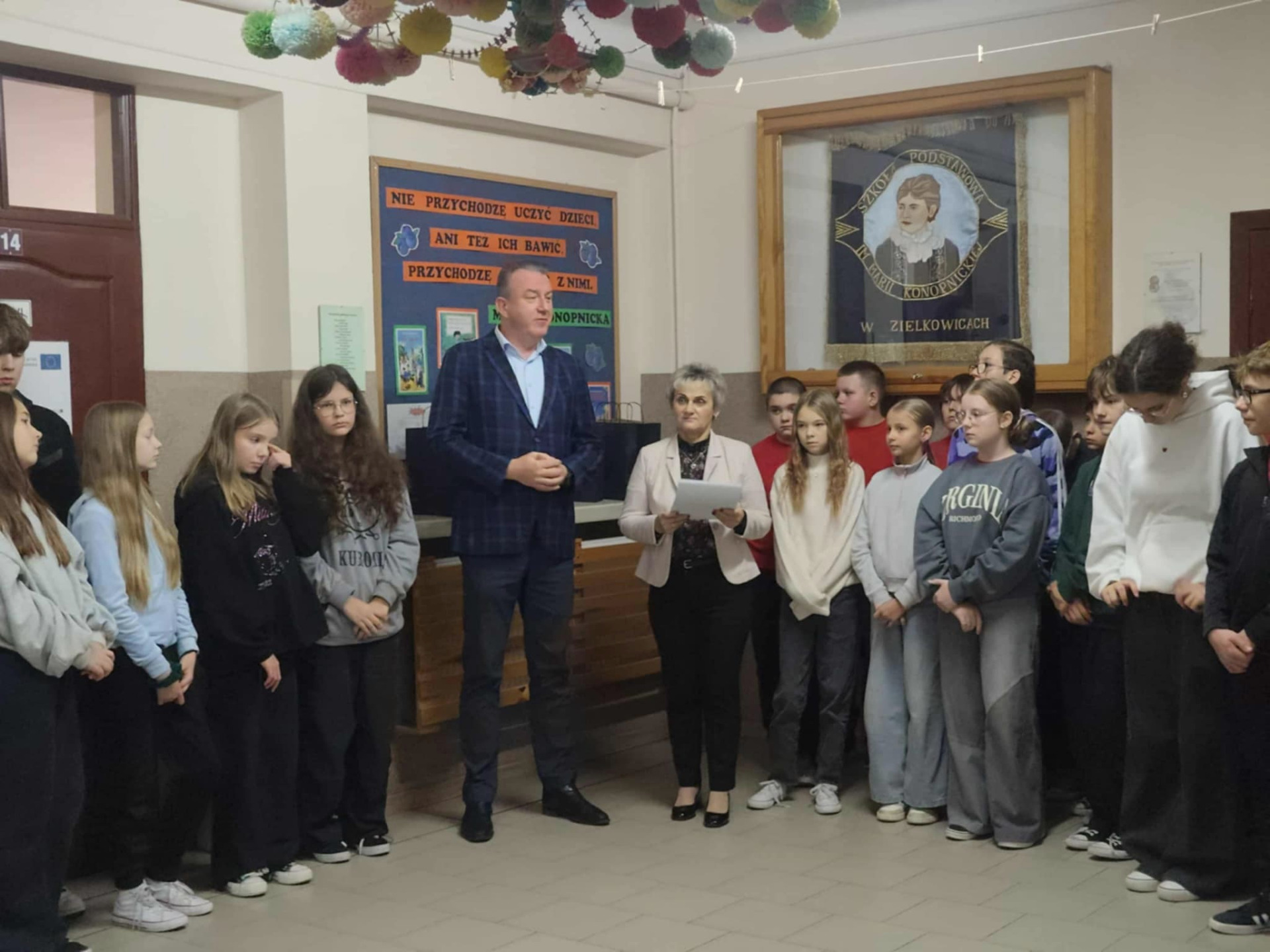 Dnia 21 listopada 2025 r. w naszej szkole odbyło się spotkanie z Senatorem Rzeczypospolitej Polskiej – panem Przemysławem Błaszczykiem, który przybył, aby uhonorować uczniów biorących udział w 8. edycji konkursu „List do Taty”.