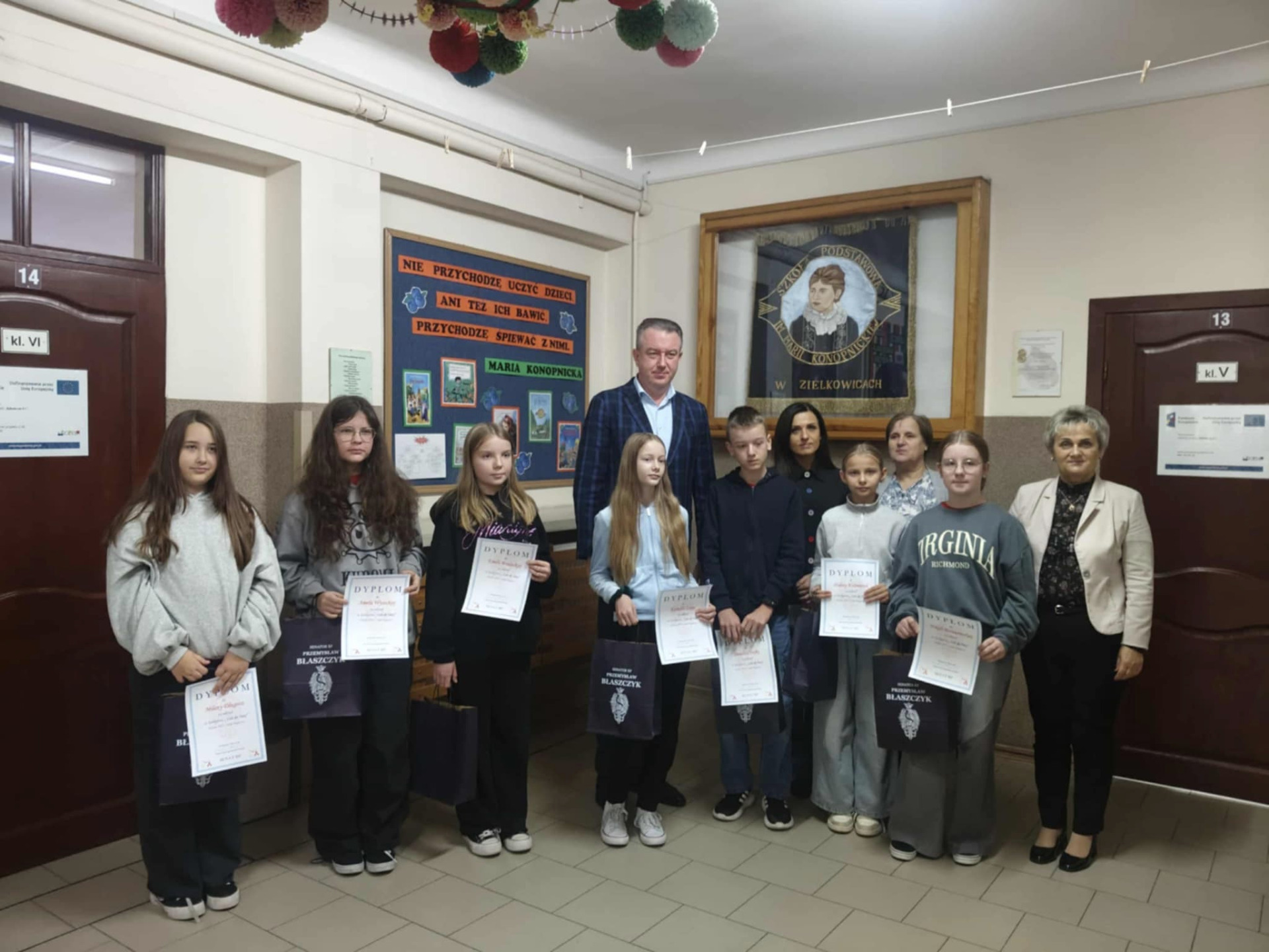 Nagrodzeni uczniowie to: Amelia Wysocka, Emilia Brodecka, Milena Długosz, Kornelia Zając, Dawid Siejka, Halina Kuśmierek i Nikola Baranowska.