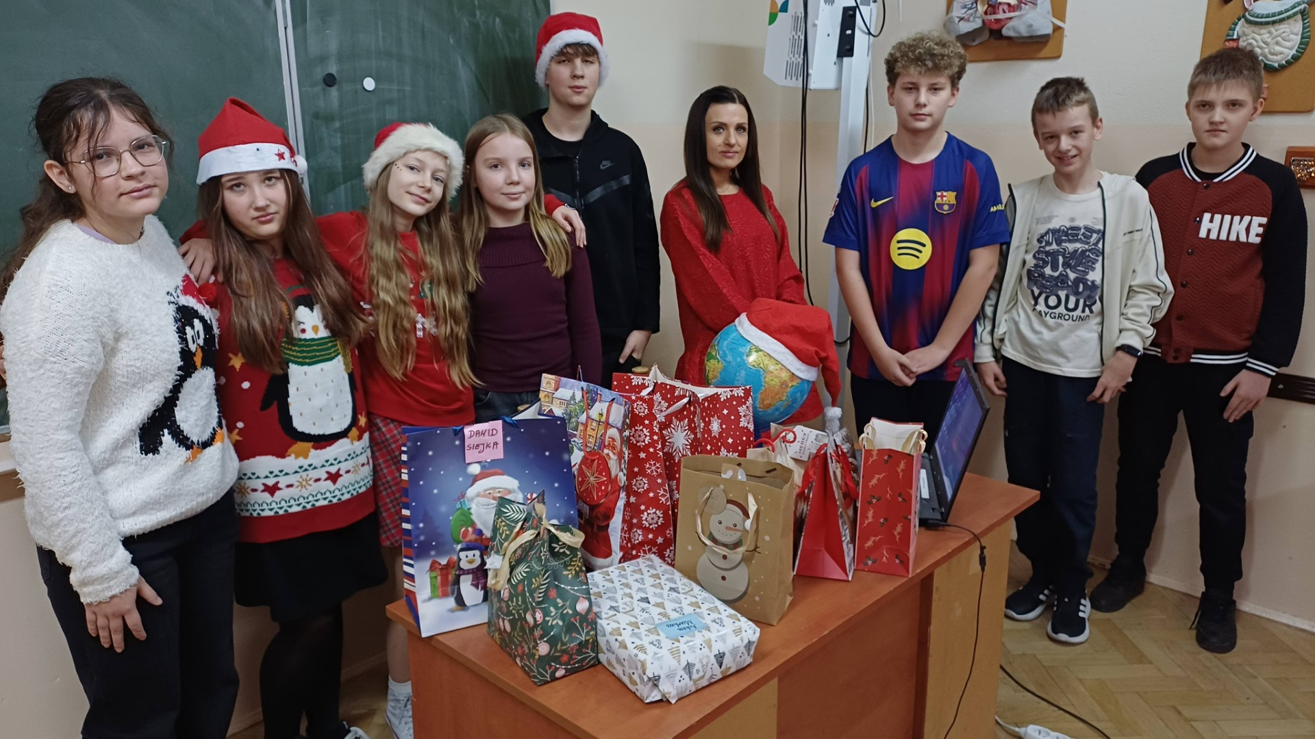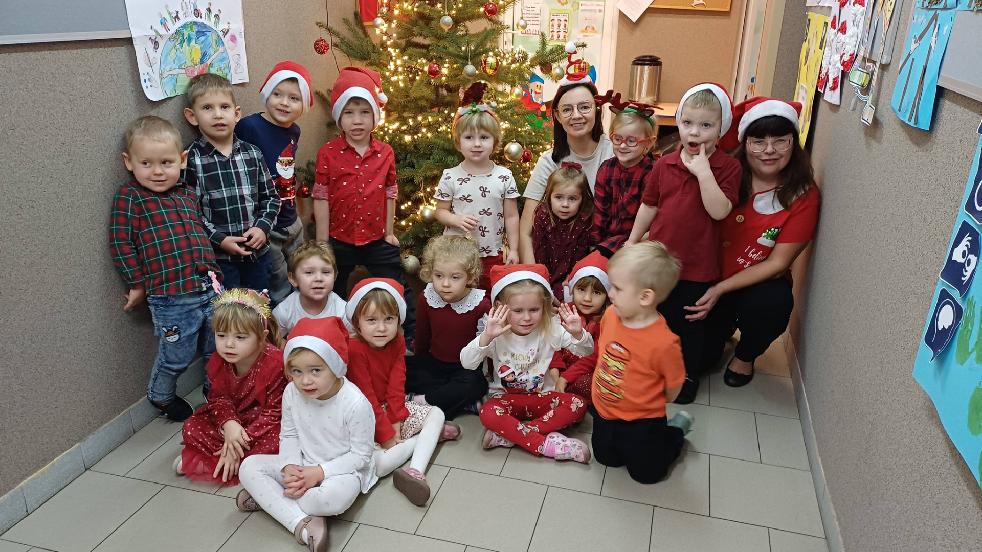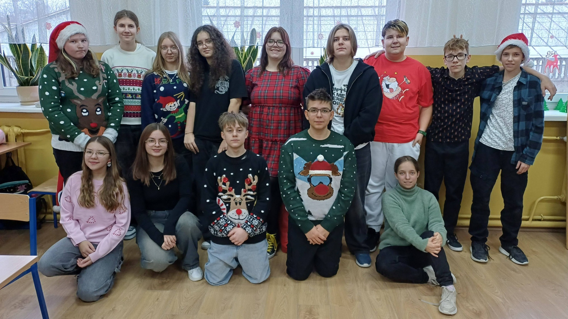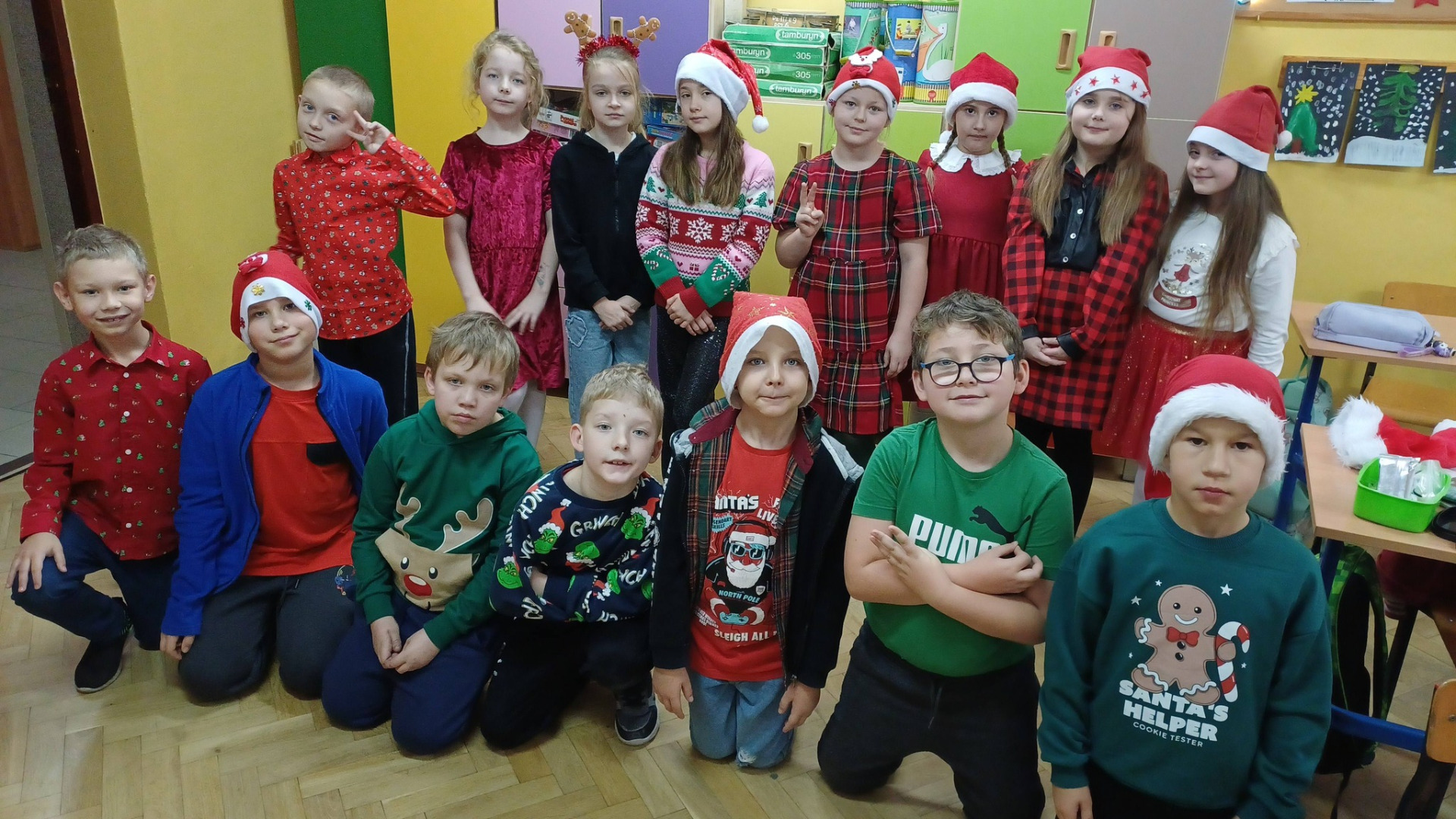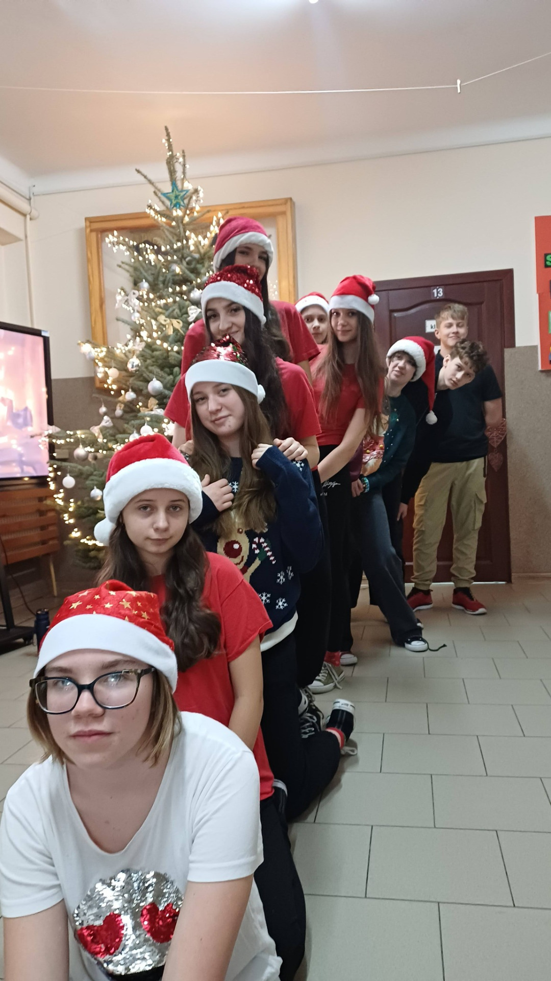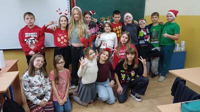 5 grudnia w szkole panowała prawdziwie świąteczna atmosfera – uczniowie i nauczyciele przebrali się w mikołajkowe stroje, były mikołajkowe czapki i reniferowe rogi. Korytarze wypełniły się uśmiechem i dobrą energią. Cała społeczność szkolna wspólnie celebrowała te chwile!