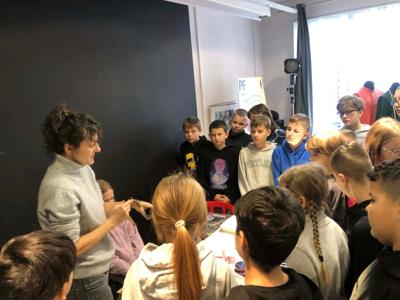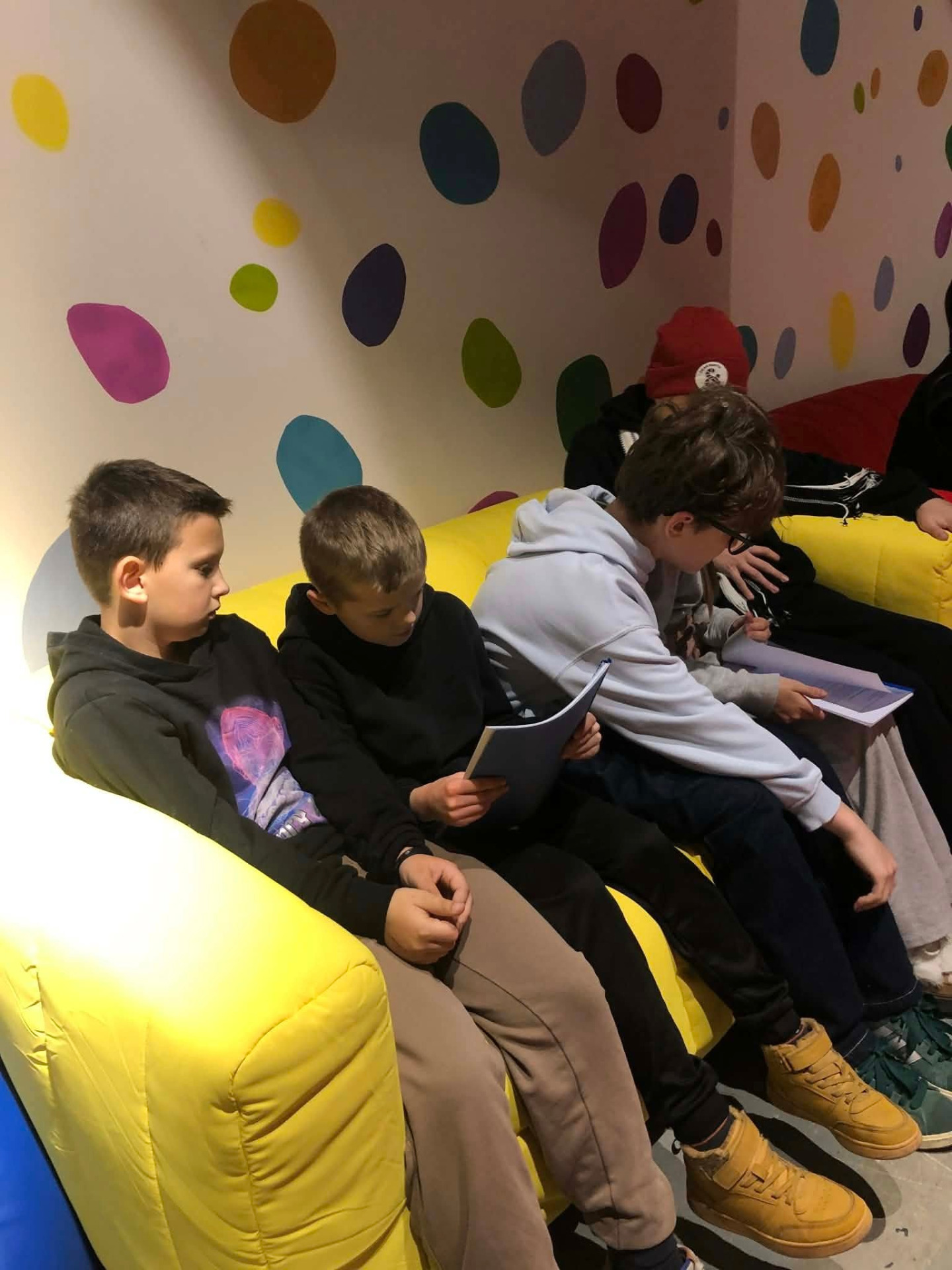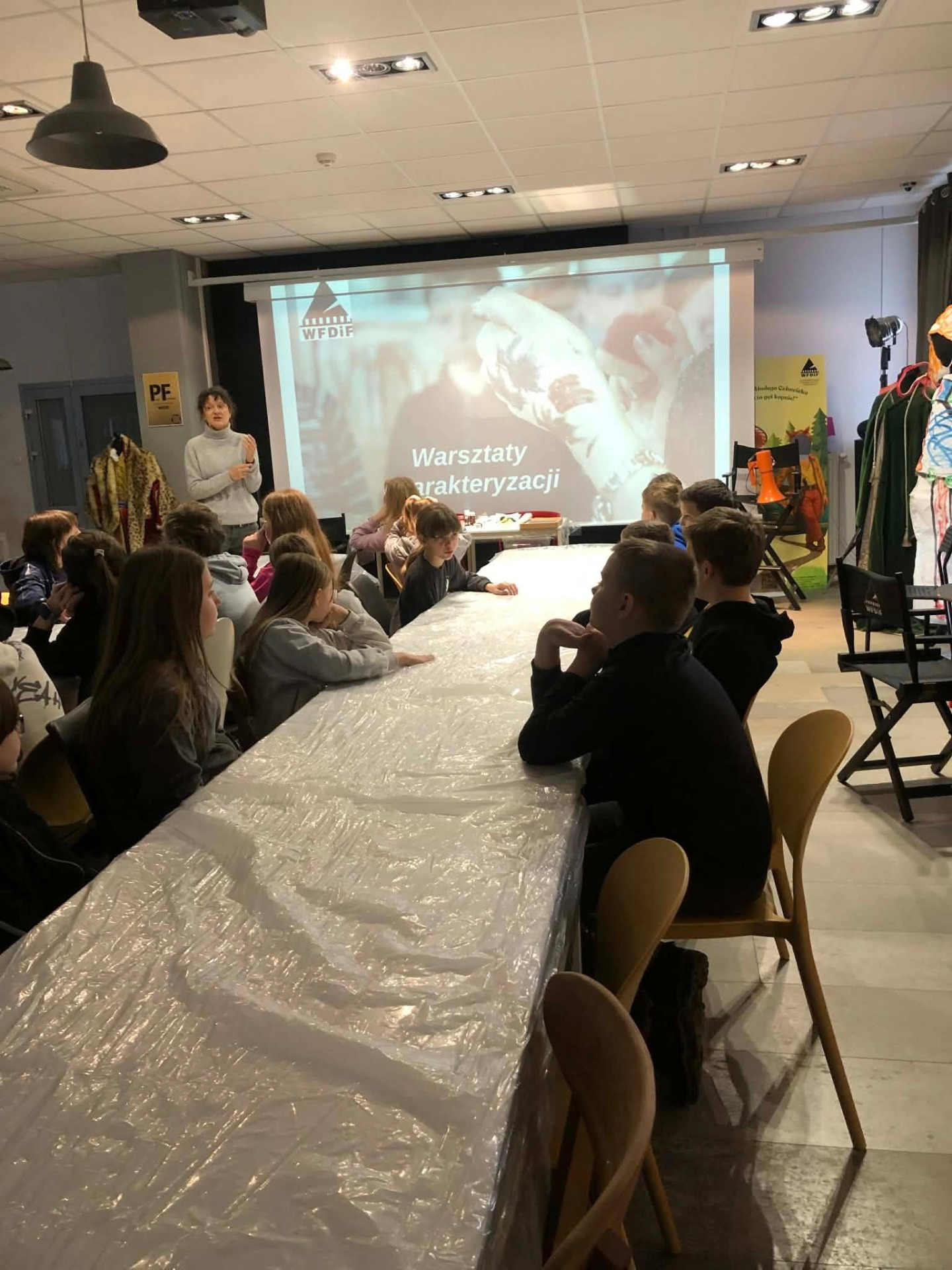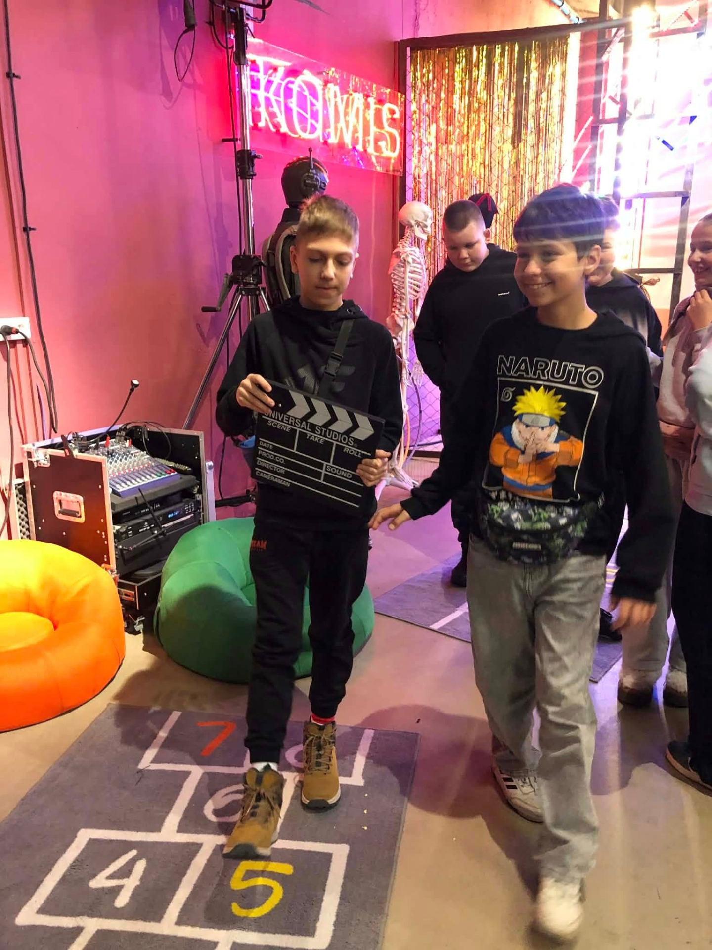 Byliśmy na Planie Filmowym, na wystawie edukacyjnej na której poznaliśmy tajniki produkcji filmowej. W otoczeniu scenografii, rekwizytów i fotosów ze spektakli Teatroteka Młodego Człowieka przechodziliśmy przez wszystkie etapy powstawania filmu i poznaliśmy je od kulis. Dowiedzieliśmy się jakie umiejętności należy posiadać, żeby pracować w produkcji, mieliśmy też okazję wcielić się w poszczególne role z planu filmowego i nakręcić własny film pod okiem specjalistów. Tu wszystko stało się jasne: od pomysłu, przez castingi, plan zdjęciowy, aż po montaż. Serdecznie dziękujemy przewodnikom Wytwórni Filmów Dokumentalnych i Fabularnych.